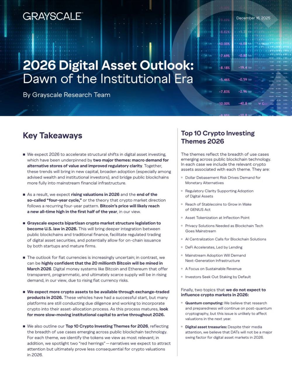 Grayscale Says 2026 Marks the Start of Crypto’s Institutional Era