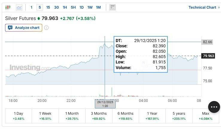 Silver surged to a new all-time high of $82 per ounce in 2025, pushing its total market capitalization to roughly $4.4 trillion as both monetary hedging and industrial demand aligned simultaneously. Inflation fears, sovereign debt concerns, and investor rotation into hard assets collided with a structural supply squeeze, while industrial usage climbed above 60% of total demand driven by solar, EVs, AI infrastructure, and electrification. With COMEX inventories tight and silver largely mined as a byproduct rather than a primary resource, the metal is once again proving that when it behaves as both money and industry, price moves tend to be fast, violent, and nonlinear.